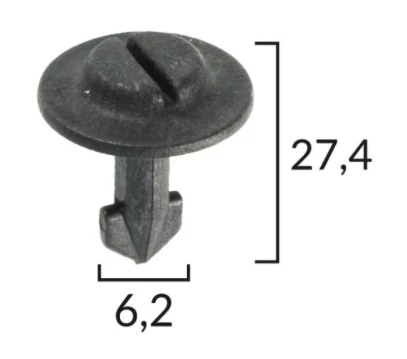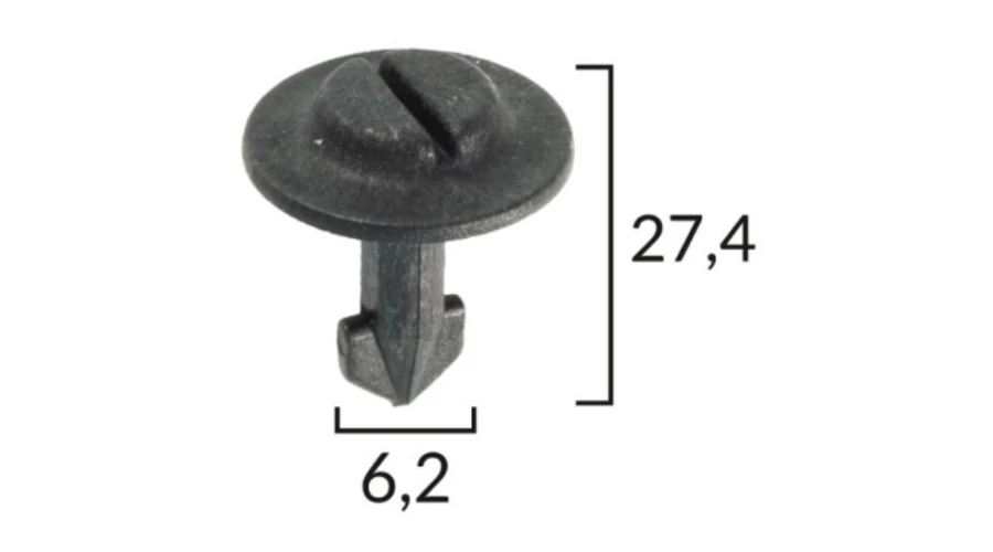 Méretek: A 24,7 mm, B 6,2 mm, C 9,8 mm, d 13,4 mm, M 27,4 mm