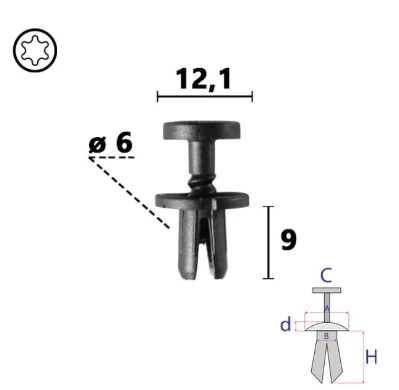 Citroen, Fiat, Peugeot, Renault több típushoz rögzítő patent, hüvely, szerelőkocka C60104 (1 db) [9]