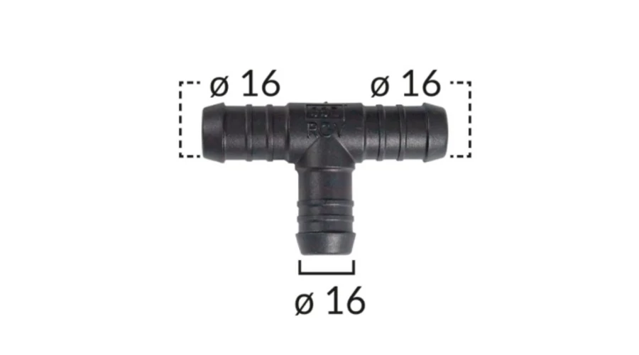Vízcső csatlakozó, T elosztó, elágazó 16 mm-es, univerzális C60422 (1 db)
