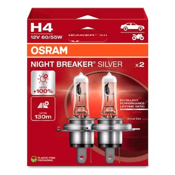OSRAM NIGHT BREAKER SILVER H4 12V 60/55W +100% emelt fényű 2 db-os készlet 64193NBS-2HB