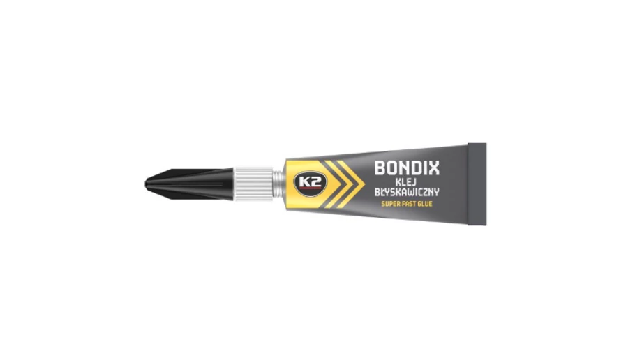 A K2 Bondix egy 10 másodperces hatóidejű pillanatragasztó egy erős, egykomponensű, univerzális cianoakrilát ragasztó műanyag, fém, fa, gumi, bőr, üveg, porcelán vagy papír elemek összekapcsolására. Rendkívül gyorsan működik, 10-15 másodperc alatt összeköti a ragasztott felületeket.