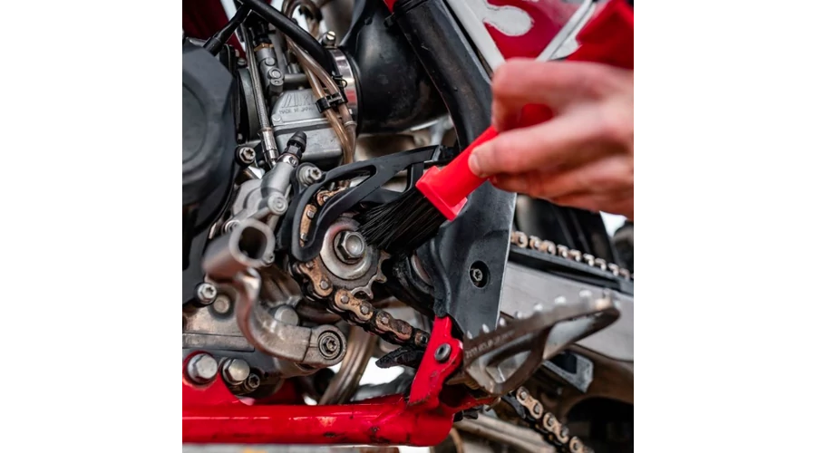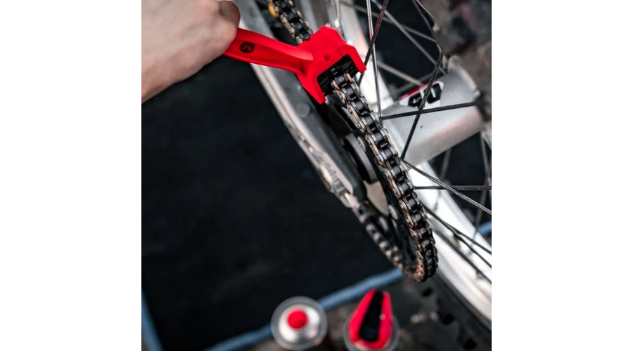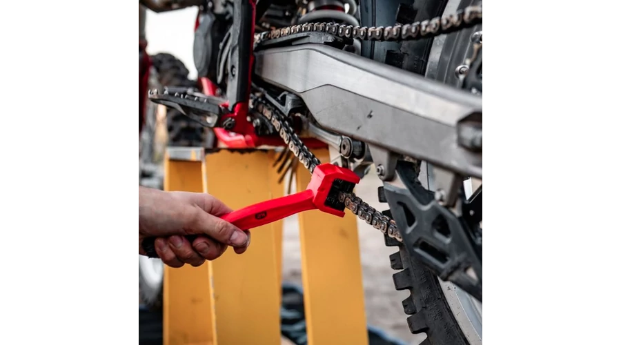 A K2 kefe lehetővé teszi a lánc minden oldalról történő alapos tisztítását,